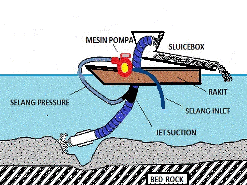 oleh penambang skala kecil dengan menggunakan kapal keruk hisap. Ini