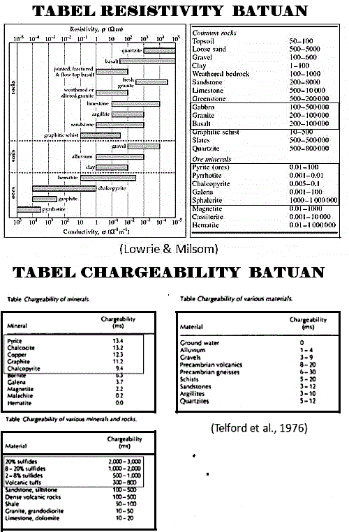 dari nilai resistivity batuan intrusi dan chargeability/induksi polarisasi (IP)