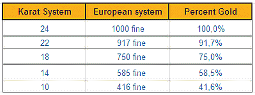 Bagian emas yang terdapat dalam campuran diukur dalam karat atau