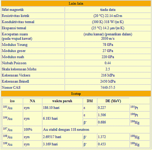 2,5 – 3 (skala Mohs). Emas dapat dibentuk jadi lembaran